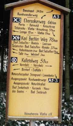 Gut beschildert: Wanderwegkreuzung bei Vlotho