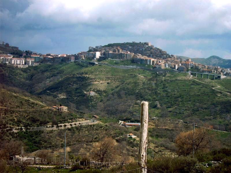 Blick auf Fondachelli. Im Hinter- grund der Portalla Pertusa
